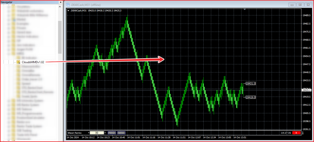 Uruchom CloudsMMDv1.02 przeciągając go do okna wykresu offline z Nawigatora lub klikając go dwukrotnie.