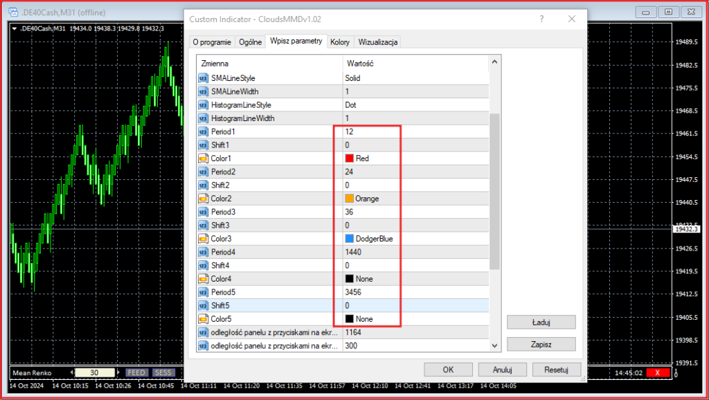 Zmień ustawienia wykresu, aby uzyskać prawidłowe klocki Mean Renko