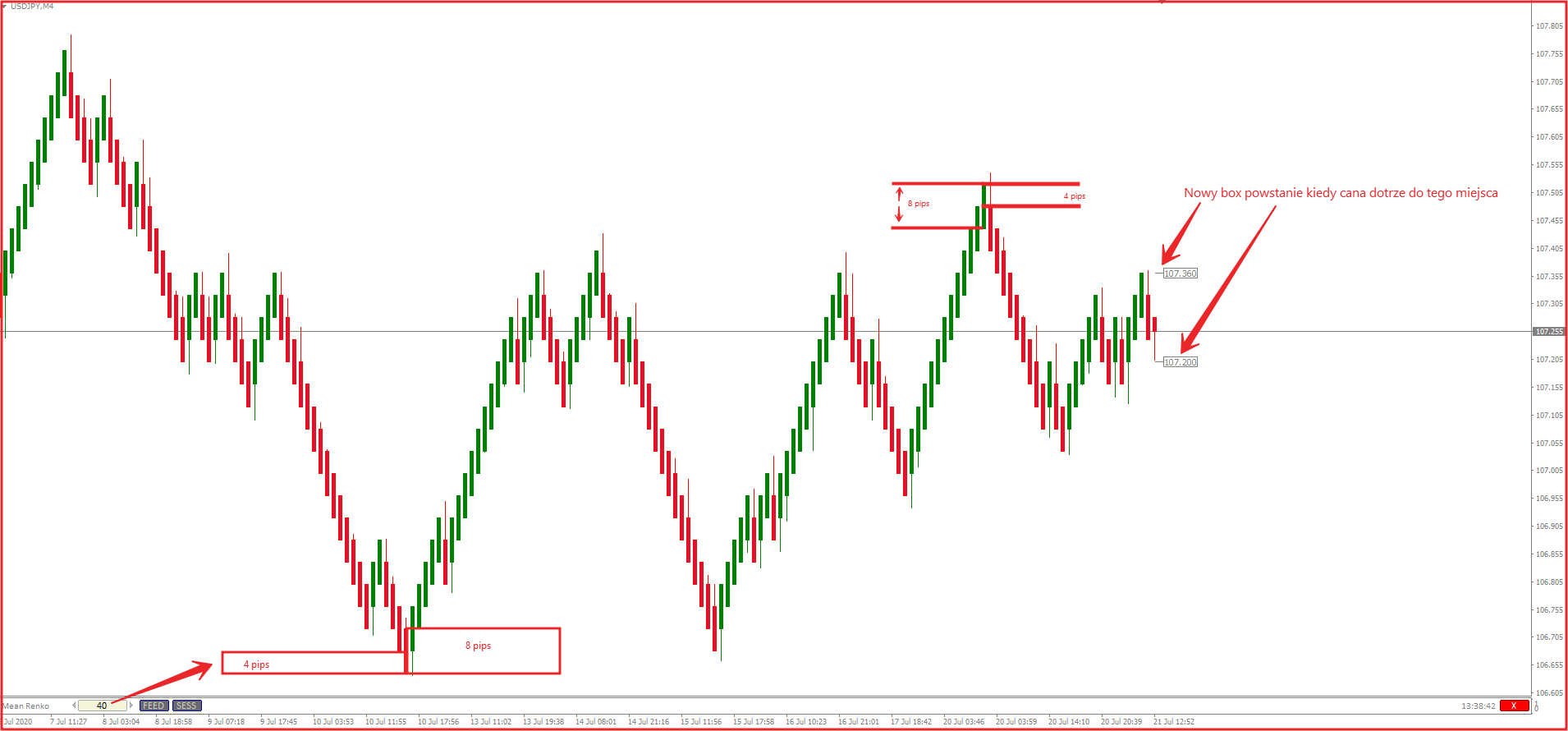 Box Mean Renko to podwojona wielkość zwykłego box-a Renko