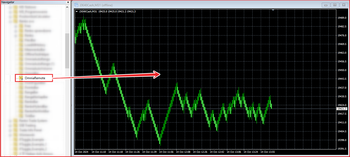 Uruchom OmniaRemote przeciągając go do okna wykresu offline z Nawigatora lub klikając go dwukrotnie.