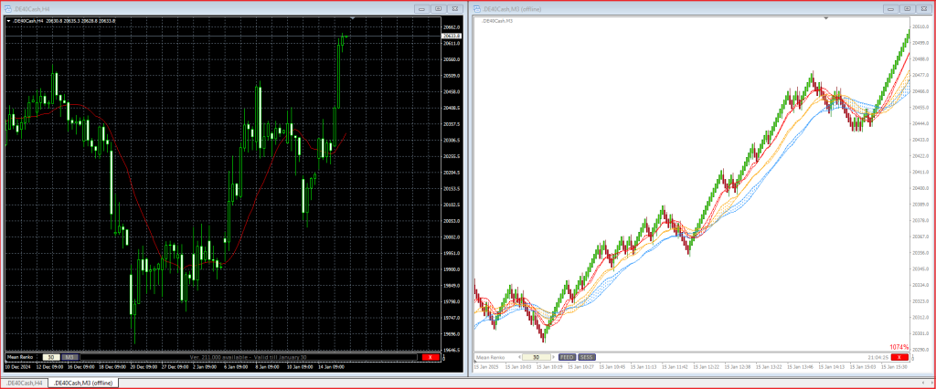Powód, dla którego używam świec Mean Renko jest bardzo prosty. Bloki Mean Renko odfiltrowują zakresy cenowe i sprawiają, że wykres wygląda bardzo czysto i przejrzyście. Dodanie do takiego wykresu zwykłych średnich Moving Averages spowoduje że całościowy obraz będzie pozwalał na szybką ocenę kiedy cena jest w trendzie, a kiedy konsoliduje. Kolejny bardzo istotny powód stosowania do handlu (scalping) świec Renko to możliwość łapania mniejszych ruchów na wykresach. Dzięki takiej możliwości można codziennie wyłapać kilka lub nawet kilkanaście okazji do zarobku. Idąc dalej tym torem, wystarczy skupić się na jednym lub dwóch instrumentach bez konieczności codziennego przeszukiwania Rynku w poszukiwaniu okazji.