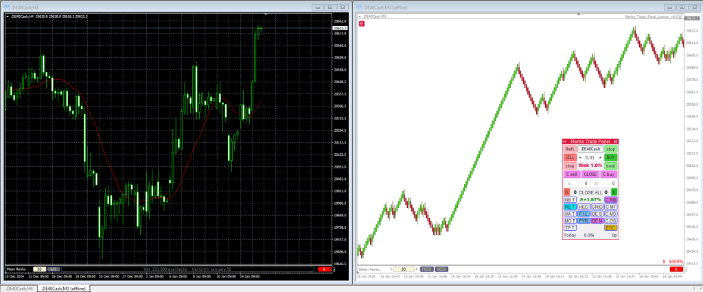 Moja strategia automatycznego handlu opiera się na wykorzystaniu wykresów Mean Renko, a powód, dla którego je stosuję, jest bardzo prosty. Bloki Mean Renko odfiltrowują szumy cenowe, dzięki czemu wykres staje się czysty, przejrzysty i łatwiejszy do analizy.